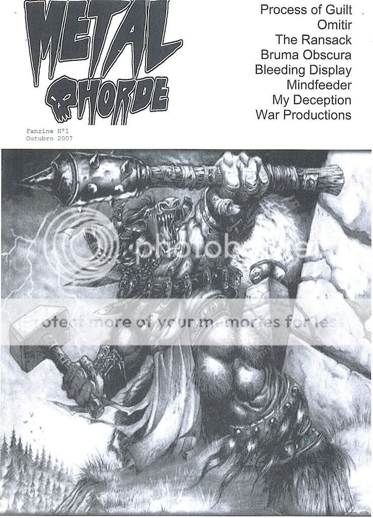 sou um vilafranquense que farto de não encontrar zines tipo velha guarda, decidi fazer uma, chamei-lhe Metal Horde e o 1º numero saíu em Outubro de 2007 com entrevistas a Omitir, The Ransack, Process Of Guilt, Bruma Obscura, Bleeding Display, Mindfeeder, My Deception e á editora War Productions, além de algumas reviews a Cd´s e Tapes. Para muitos a palavra zine é uma coisa desconhecida, para aqueles que como eu andam nisto á uns aninhos, zine é sinónimo de underground, é sinónimo de luta, esforço, mt suor e sangue derramado, ok, talvez esteja a exagerar um pouco :-), mas isto é um sonho que andava na minha cabeça á uns bons anos e que finalmente viu a luz do dia. Quem quiser saber mais sobre a zine está á vontade para falar comigo, quem quiser descobrir que bandas fervilham na nossa cena nacional dêem uma vista de olhos, ler faz bem :-) O 2º numero se tudo correr bem deve sair no final de Janeiro/principios de Fevereiro de 2008...